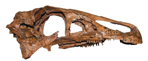 Прекрасно сохранившийся череп позднемелового теризинозавра эрликозавра из Монголии демонстрирует беззубый участок клюва, мелкие щечные зубы и большое отверстие для ноздрей – типичные признаки группы