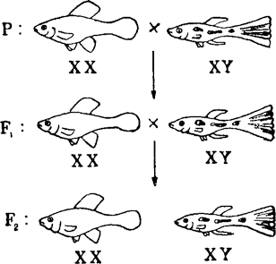 А в У-хромосоме гены обнаружены лишь у одного домашнего животного — рыбки гуппи. Здесь в У-хромосоме самцов множество генов окраски. Их легко проследить и выявить. Для этого самца достаточно скрестить с самкой из другой породы. Все пятна, штрихи и точки, которые сыновья унаследуют от отца, зависят от генов У-хромосомы.