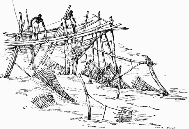 Для успешности лова рыбы требовалось также знание сроков времени наиболее выгодного лова, в частности при прохождении рыб вверх по течению рек для нереста. Для проходных рыб - это стихийное явление, когда они идут сплошной массой и так густо, что животные могут хватать рыб с берега. Естественно, что и люди приноравливались к использованию такой биологической особенности ряда рыб (рис. 21). Очевидно, что это сопровождалось наблюдением над реками и их обитателями. Охота носила хищнический характер, что в период обилия рыбы не отражалось резко на ее количестве. Но с течением веков и с усовершенствованием установок для механического вылова рыбы обилие её ценных сортов упало настолько, что государственная власть была вынуждена принимать охранные мероприятия, регламентируя методы, сроки и условия лова ценных промысловых рыб. Вылавливая то или другое количество их при движении к местам икрометания, необходимо пропускать к нерестилищам достаточную массу самцов и самок, чтобы обеспечить размножение рыб и удержать их численность на какой-то высоте. Конечно, такие мероприятия могут обосновываться не "ползучим эмпиризмом" обыденных наблюдений, а научным изучением биологии и экологии рыб как с общебиологических, так и с специально промысловых точек зрения. Этим ведают ихтиология, гидробиология и другие науки, промысловое рыборазведение. К сожалению, люди поздно пришли к сознанию необходимости рационального использования водных пищевых рессурсов, ибо за предшествовавшее историческое время хищническая охота привела к уменьшению численности весьма ценных промысловых рыб (например, осетровых). Само собою понятно, что такое истребление рыб отражается и на структуре биоценозов, сочленами которых являются соответственные виды рыб.