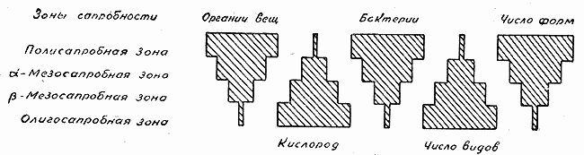 Рис. 23. Схема сапробных зон (по Долгову и Никитинскому)