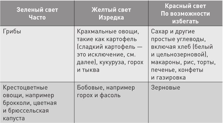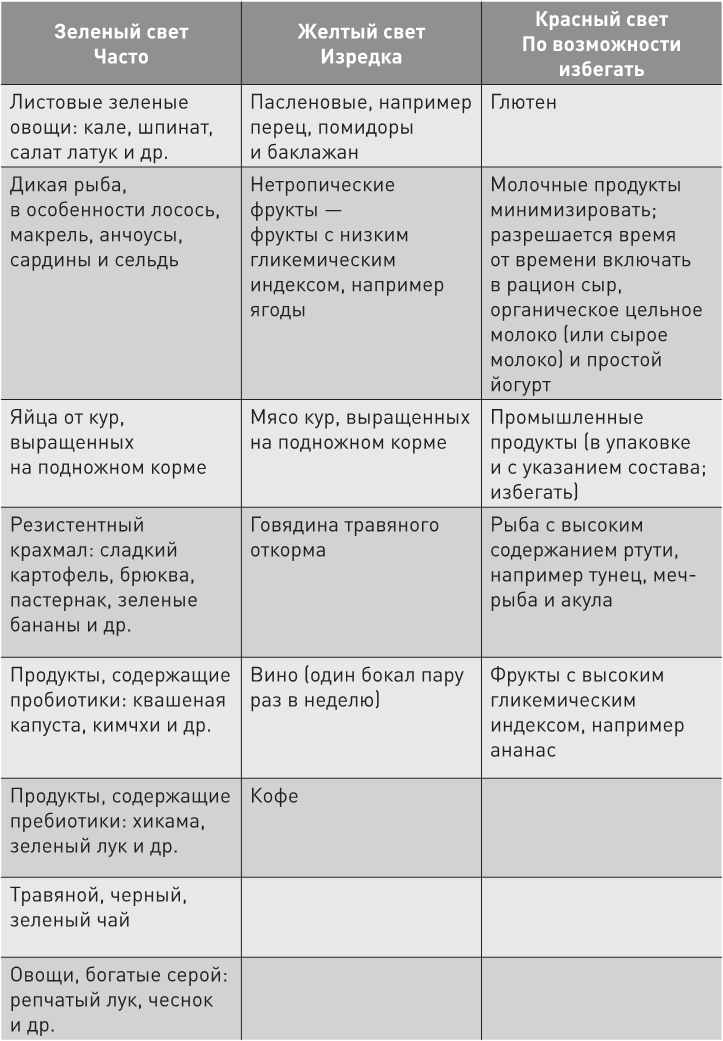 Одним продуктам я даю красный свет, вторым – желтый, а третьим – зеленый, т. е. одних необходимо полностью избегать, вторые – употреблять в ограниченном количестве (потому что полный отказ от них усложняет протокол ReCODE, здесь работает принцип «немного лучше, чем ничего»), а третьих можно есть столько, сколько душе угодно.