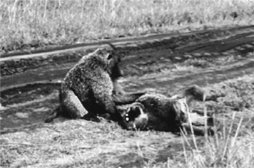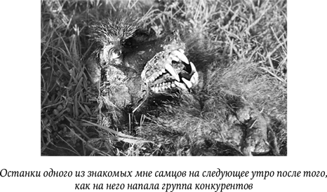 Каким-то образом «мои» павианы прознали об угощении за холмом, и вскоре каждое утро с полдюжины животных отправлялись поучаствовать в пирушке. В группу входил не абы кто: все-таки смельчакам предстояла встреча с 50 или 60 Чужими. Этими «отважными» были крупные и агрессивные самцы. Обычно павианы посвящают утренние часы общению: они сидят рядышком, играют, вычесывают друг друга, так что группа «охотников» лишала себя общения. Ее члены были самыми злобными, самыми необщительными из всей стаи.