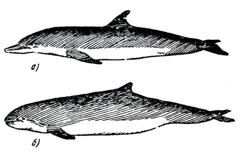 Рис. 11. Расположение гребней под тонким роговым слоем у обыкновенного дельфина (а) и у морской свиньи (6) (по П. Пурвесу)