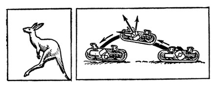 Рис. 2. Кенгуру и схема перемещения прыгающего автомобиля