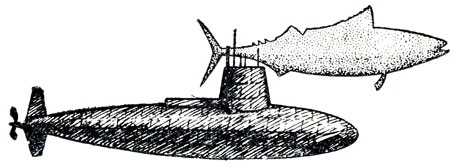 Рис. 6. Американская подводная лодка 'Скипджек'. Форма корпуса подводной лодки точно такая же, как и у быстроходной рыбы тунца