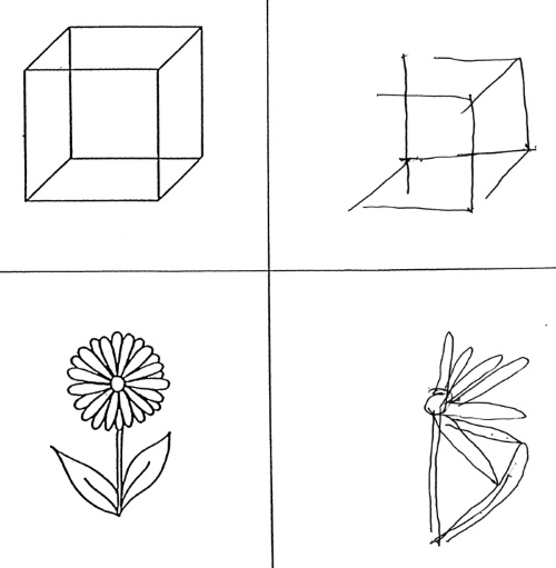 Справа – рисунки человека, страдающего «синдромом игнорирования»; он не замечал ничего, что находилось слева от него. (Масуд Хусейн, из статьи «Hemispatial Neglect», Parton, Malhotra and Husain, Journal of Neurology, Neurosurgery and Psychiatry 75, no. 1 [2004]: 13–21).