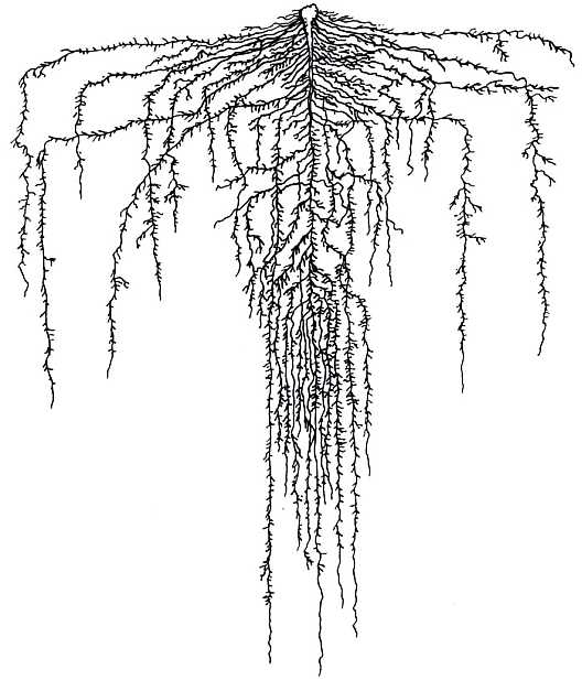 Так вглубь и вширь разрослись корни свеклы через пятнадцать недель после появления всходов.
