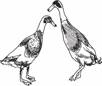Отличительные признаки. Туловище поставлено почти вертикально, шея длинная и тонкая. Ноги длинные. Во время ходьбы утки данной породы не переваливаются с боку на бок, а быстро бегают, поэтому и носят такое название. Оперение, как правило, белого окраса, но также может быть черного, бурого или другого цвета (рис. 34).