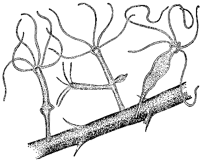 В любительском аквариуме гидры — нежелательные гости; в школьном — один из интереснейших объектов для наблюдений и экспериментов. Появляются они в аквариумах случайно с кормами, прудовыми растениями (рис. 15). Выловленные из природных водоемов, гидры хорошо живут в любых сосудах с чистой водой и растениями. Их собирают в конце лета — начале осени с растений (злодея, листья кувшинок, рдест и др.). Здесь же набирают в банки воду и дают ей отстояться на твердом грунте. Если в банку с растениями попали гидры, то через 20–30 мин они расправят тела и щупальца и станут хорошо заметны через лупу или даже невооруженным глазом. Если гидр не окажется в банках, нужно собрать растения в другом месте.