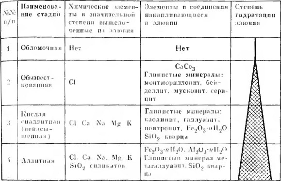 Табл. 4. Фазы развития коры выветривания изверженных пород (ортоэлювин)