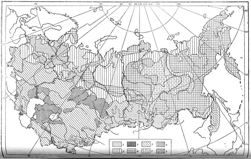 Меньшая биогенность коры выветривания по сравнению с почвами и илами определяет и меньшее ее разнообразие. Это выявилось особенно наглядно при сравнении зональности почв и коры выветривания. Еще Г. Н. Высоцкий и другие ученики Докучаева установили, что кора выветривания и континентальные отложения в своем распространении подчиняются закону зональности. Однако эти зоны не соответствуют зонам почв — они значительно шире. Например, все степи и пустыни относятся к одной зоне коры выветривания, хотя на этой территории и умещаются четыре почвенные зоны. Поэтому на изверженных породах и под черноземной, и под каштановой, и под сероземной почвами образуется одна и та же кора выветривания — обломочная обызвесткованная.