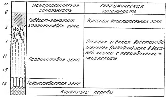 Кора выветривания первого ряда с окислительной обстановкой. Она широко распространена, хорошо изучена и наиболее разнообразна.