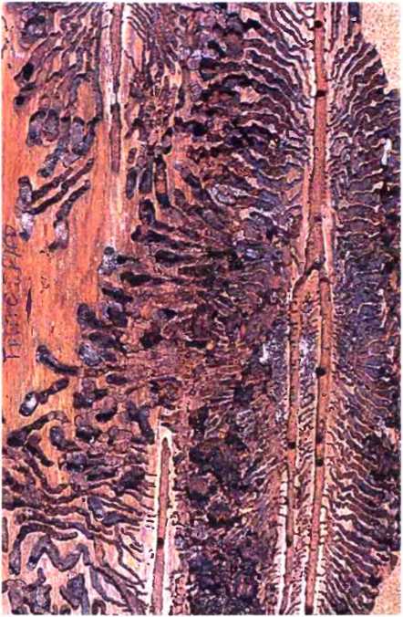 Дело в том, что у короедов взрослые особи и личинки живут в разных мирах. Жуки наслаждаются вольной лесной жизнью, перелетают с дерева на дерево, подгрызают молодые почки или свежую кожицу на побегах. А личинкам природа предназначила иную участь: всю жизнь проводят они в темных тоннелях, которые сами же неутомимо выгрызают в коре или древесине. Но как попадают они туда? Конечно же не сами. Об этом и заботятся взрослые жуки — их родители.