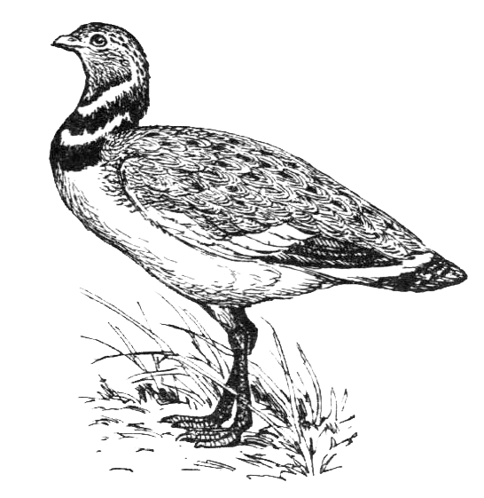Участки целинных степей и залежных земель Заволжья и Западной Сибири населяет стрепет. Эта некрупная птица (масса не более 4 кг) — родственница дрофы. Спина стрепета серовато-охристая с темным рисунком, грудь белая, шея черная с двумя узкими белыми «ошейниками».