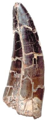 Ножевидные, слегка изогнутые зубы, подобные этому, типичны для больших теропод, таких как мегалозавриды и аллозавриды. Вдоль переднего и заднего краев коронки зуба проходят тонкие зазубрины. Такие зубы специально приспособлены, чтобы рассекать плоть