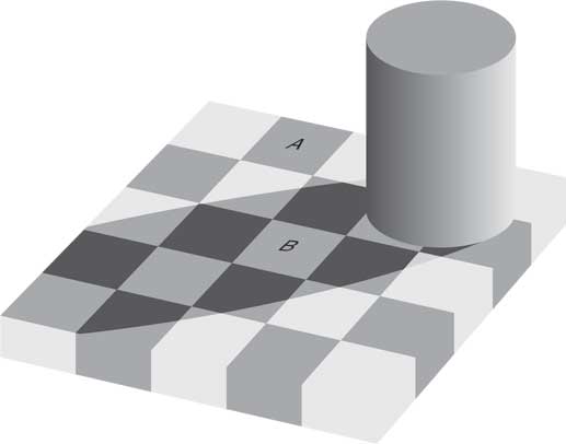 Поначалу эту концепцию непросто принять на веру, но ее довольно легко проиллюстрировать с помощью простой зрительной иллюзии – иллюзии с тенью на шахматной доске (иллюзия тени Адельсона) (см. рис. 2.2).