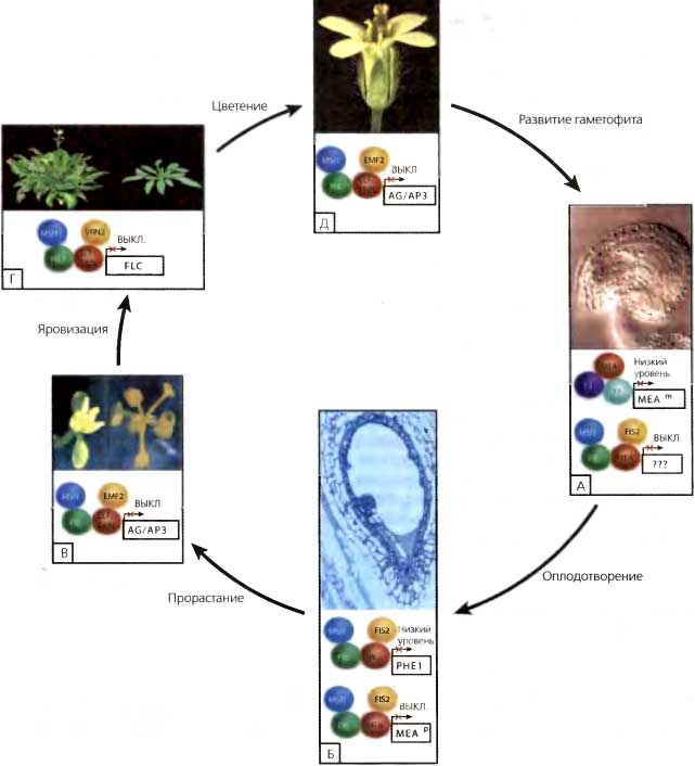 Рис. 11.4. Участие различных PRC2 на разных стадиях развития растений