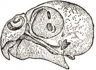 Рис. 1. Череп волнистого попугайчика (Evans, 1969)