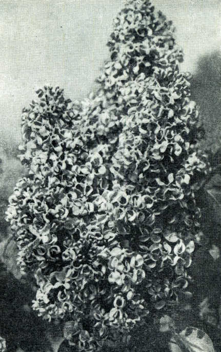 Куст широко-раскидистый, среднего размера, не превышающий 2 м высоты, хорошо облиствен, побегообразовательная способность средняя. Соцветие крупное — длина до 25—27 см и ширина 12—13 см, в виде широкого конуса, прямостоячее, незначительно прикрывается листьями новых побегов. Бутон крупный, округло-удлинённый, пурпурно-лилово-фиолетовый, иногда с довольно интенсивным медным оттенком. Бутоны легко и дружно распускаются. Цветок немахровый, размером до 2,7 см, светло-фиолетово-пурпурный. Лепестки округло-удлинённые, при полном распускании сильно изгибаются и принимают форму, близкую к винту пропеллера самолёта.