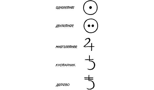 Ботаники в определителях и на гербариях ставят знаки долголетия растений.