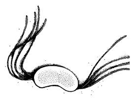 Это самый простой из возникших вариантов. Двуклеточный организм, у которого передняя клетка — вегетативная («сома») с глазком, а задняя — генеративная («герма»). Задняя клетка, созревая, производит гаметы и сразу же заменяется новой, образовавшейся в результате деления головной клетки.