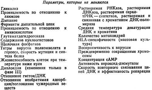 Таблица 8.1. Метаболические и клеточные параметры, которые снижаются, повышаются или не изменяются при старении интактных фибробластов человека in vitro [26]