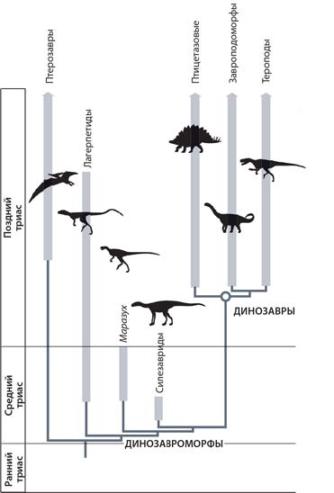 Несколько динозавроподобных архозавров из среднего и позднего триаса – лагерпетиды, маразух и силезавриды – вместе с динозаврами относятся к кладе Dinosauromorpha. Все были маленькими легкими животными