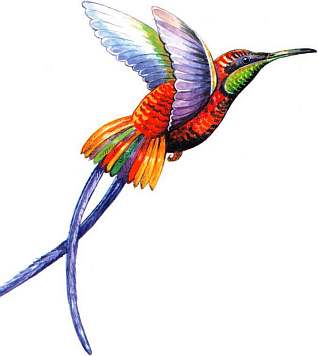 Топазовая колибри является одной из самых маленьких и красивых птиц в мире. Хотя длина этой птички и достигает 20 см, большая часть этой длины приходится на хвостовые перья. Не забудем, что есть и другие виды колибри размером чуть больше шмеля. В расцветке колибри гармонично сочетаются медно-красный, золотистый, зеленый и другие экзотические оттенки. Водится топазовая колибри, видимо, только на территории Гвианы по берегам рек, поросших густым лесом. Колибри, неустанно работая крыльями, зависает перед цветком и своим длинным клювом извлекает из глубины венчика нектар — недаром колибри называют райской птицей, ведь нектар считается «райским» лакомством.