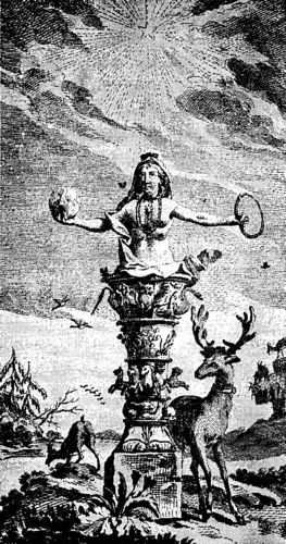 Артемида Эфесская была в силу необъяснимой двойственности греческих божеств одновременно богиней природы и городов. В изначальном воплощении как объект культа, процветавшего в Малой Азии около VI века до н.э. она считалась защитницей от злых сил, и ее образ помещали на городских стенах в окружении отличительных признаков страны, изображений виноградных гроздьев и льнувших к ней животных наподобие львов, змей, птиц и гарпий. Извлеченная из эфесских руин, в XVIII веке она стала символом дикой природы и разума. Якобинцы даже посвятили ей Храм разума, который некогда возвышался в Страсбурге, но до нашего времени не сохранился. Возможно, поэтому Линней поместил ее в самом начале своей "Фауны" в знак победы Разума над Природой, хотя и шведской: разлученная со своей средиземноморской родиной, Артемида стоит среди прогуливающихся оленей.[264]