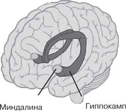 Рис. 5. Миндалина соприкасается с передней долей гиппокампа и моделирует воспоминания в зависимости от эмоционального контекста