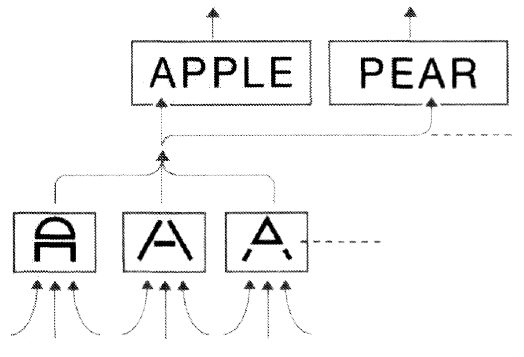 Перечисленные образы составляют образ более высокого порядка, относящийся к категории печатных букв (в новой коре, конечно, таких формальных категорий не существует).