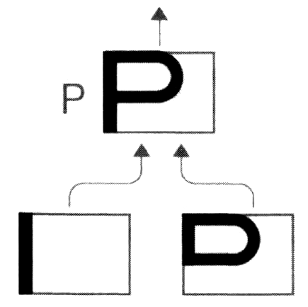 Образы, из которых складывается образ более высокого порядка — буква «Р».