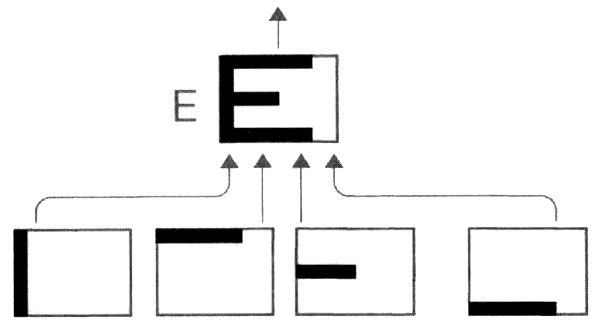 Образы, из которых складывается образ более высокого порядка — буква «E».