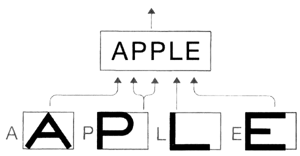 В качестве примера рассмотрим набор знаков, использующихся для изображения печатных букв. Здесь каждый уровень — это образ. Формы — это образы, буквы — образы, слова — тоже образы.