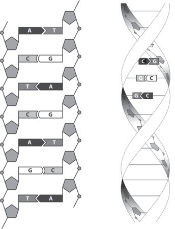 Каждая хромосома содержит длинную молекулу ДНК, о которой мы уже говорили. В вытянутом виде ДНК представляет собой некое подобие винтовой лестницы, ступеньки которой состоят из четырех оснований: цитозина, гуанина, аденина и тимина, – причем каждому основанию в одной половине ДНК строго соответствует другое основание. Ваши гены, о которых так много говорят в последнее время и которые считаются фундаментальными основами жизни, не являются какими-то отдельными образованиями. Это сегменты молекулы ДНК.