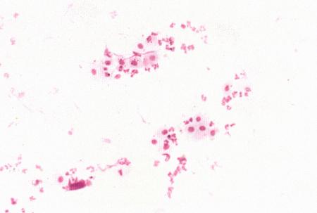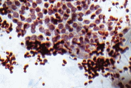(а, b) мазки секрета простаты при остром простатите у кобеля. Присутствует большое количество нейтрофилов, бактерий и разрушенных клеток.