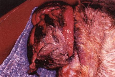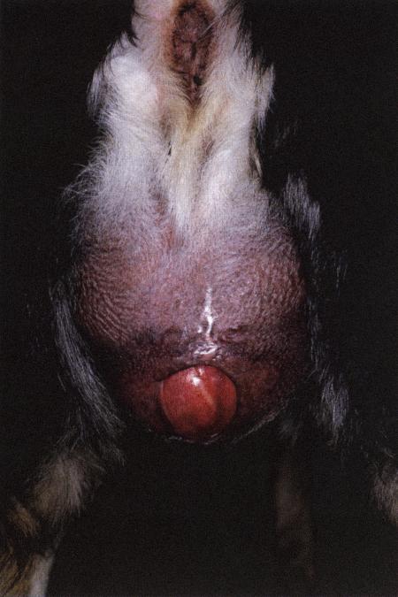 Вагинальная гиперплазия с протрузией влагалища на 360 градусов. Фотография сделана в ходе эпизиотомии, предшествующей хирургическому удалению (с любезного разрешения Dr Martin Sullivan).