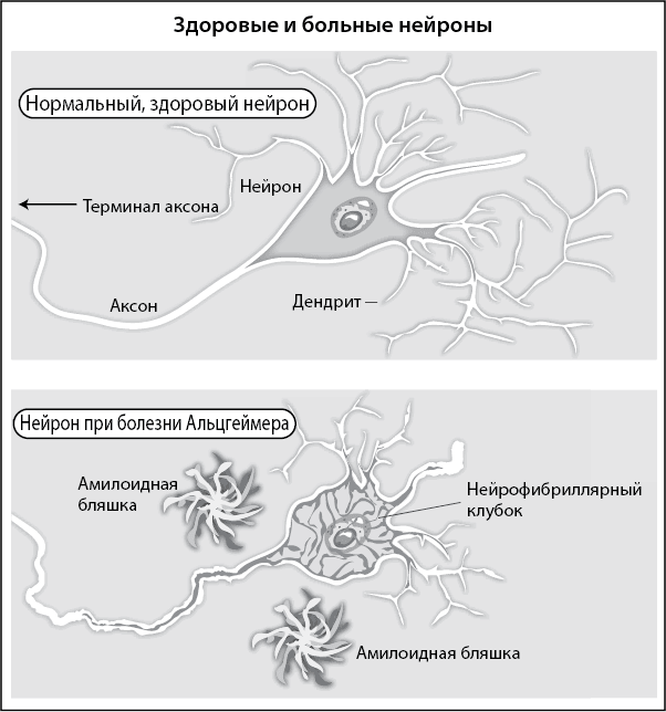 Как установил сам доктор Алоис Альцгеймер, в мозге человека, страдающего заболеванием, которое сегодня носит его имя, образуются бляшки и клубки. Бляшки, которые по виду напоминают колючие плоды амбрового дерева, преимущественно состоят из пептида бета-амилоида (A?). (Об этом я подробно рассказал в главе 1).