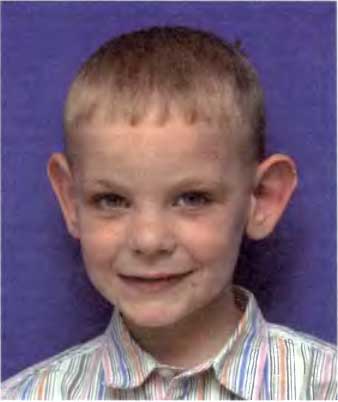 Фотография пациента с синдромом ломкой Х-хромосомы, который, помимо умственной отсталости, обладает типичными признаками, а именно выдающимся лбом и большими ушами. Фотография любезно предоставлена доктором Стивеном Уорреном (Dr. Stephen Т. Warren)