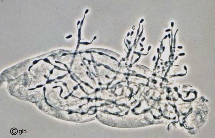 Сверху — здоровая бделлоидная коловратка, снизу — то, что от нее остается после заражения грибом Rotiferophthora