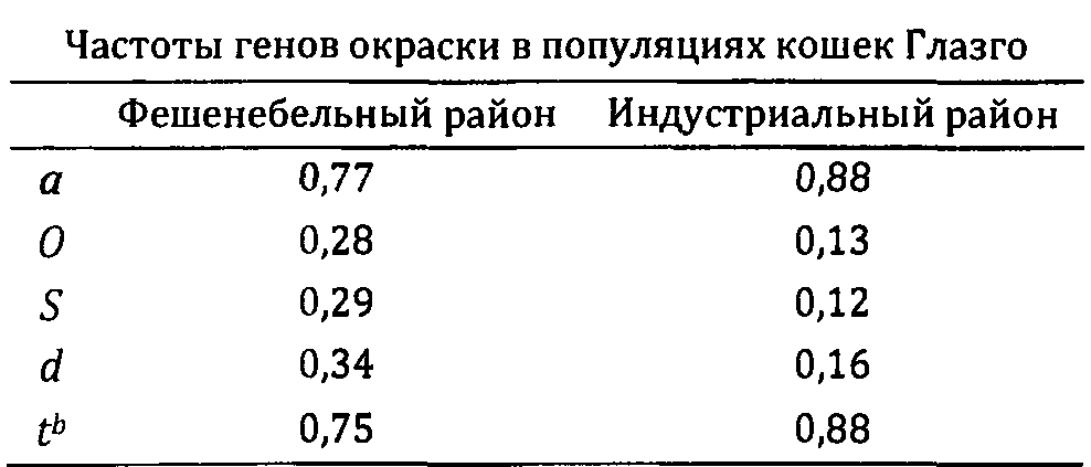 Если сравнивать по частоте гена а крупные города, географически удаленные друг от друга, то они оказываются очень сходными в этом отношении. В то же время в окрестных деревнях частота черных кошек оказывается значительно меньше, чем в городах.