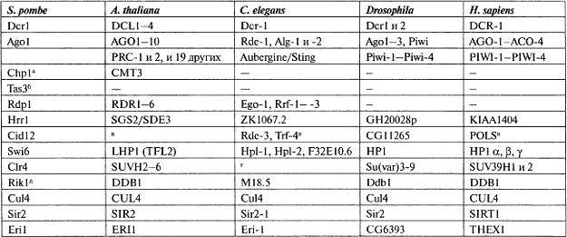 Таблица 8.1. Консерватизм RNAi и белков гетерохроматина [перевод]