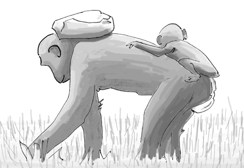 Бонобо Лисала несет тяжелый камень по пути к месту, где, как ей известно, растут орехи. Собрав орехи, она направляется дальше, к единственной большой каменной плите в округе, где она использует свой камень, чтобы расколоть скорлупу орехов. Заблаговременная заготовка и долгая транспортировка орудия подразумевает планирование
