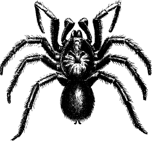 В качестве одной из характернейших для тропиков групп животных среди паукообразных можно назвать настоящих пауков-птицеедов. На Кубе эта группа представлена одним довольно обычным, распространенным по всему острову видом Eurypelma spinicrus (рис. 9). Это мохнатые шестиглазые пауки, длина туловища которых достигает 6 и более сантиметров. Птицееды ведут ночной образ жизни. Днем они устраиваются в норах, которые сооружают на сухих, хорошо прогреваемых пригорках и чаще всего под камнями. Норки неглубокие и, вооружившись длинным пинцетом, можно без особого труда извлечь обитателя наружу. С наступлением сумерек пауки выходят на охоту. Как правило, они охотятся на различных насекомых, но могут также нападать на ящериц и даже на птенцов, чем оправдывают свое название.