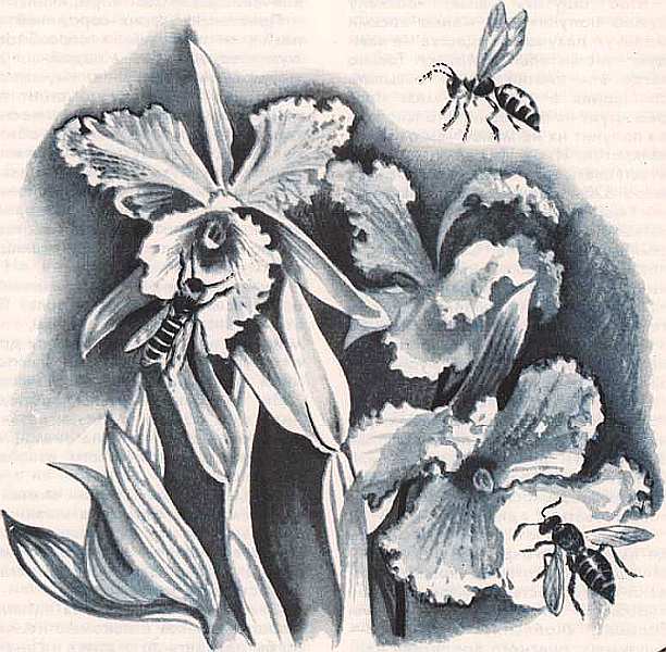 Насколько насекомые верят больше своему «носу», чем глазам, говорят и такие наблюдения: определенные виды орхидей издают запах, похожий на тот, который испускают самки некоторых шмелей. Привлеченные этим запахом, самцы садятся на цветок. Убедившись в коварстве орхидей, они улетают, но очень часто опять попадаются на удочку — снова садятся на цветок. «Обманывает» орхидея шмелей для того, чтоб заставить их переносить пыльцу. Любопытно, что у этих орхидей нет нектара — приманка-запах вполне заменяет приманку-лакомство.