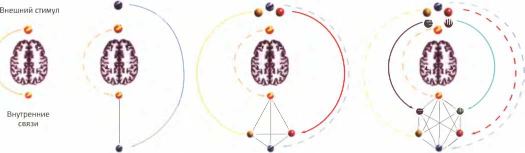 Каждое мгновение мозг реагирует на внешние стимулы небольшими вспышками новой активности, каждая из которых отличается характерной конфигурацией. Эта активность, в свою очередь, создает постоянно меняющуюся внутреннюю среду, на которую мозг также реагирует по-своему. В результате получается система с обратной связью, в которой происходят постоянные изменения.