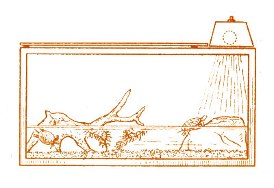 В зимнее время естественного тепла и света для обитателей террариума недостаточно и поэтому необходимо искусственное "солнце". При содержании пресмыкающихся источники тепла можно размещать внутри помещения, а при содержании земноводных их необходимо размещать с таким расчетом, чтобы прямые контакты были исключены, тем самым предотвращались бы возможные ожоги.