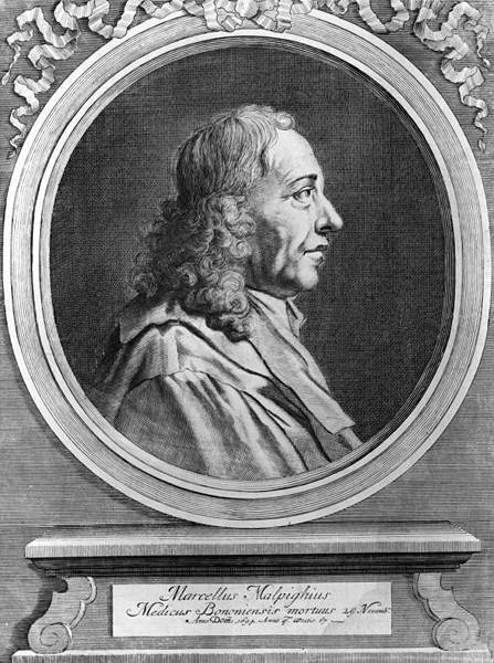 Марчелло Мальпиги (М. Malpighi) родился 10 марта 1628 г. Учился в Болонье, здесь же в 1653 г. получил степень доктора медицины. Он читал лекции и жил в разных городах, но предпочитал Болонью, а потому перечень городов и выглядит так: Болонья, Пиза, Болонья, Мессина, Болонья. Наконец, в 1691 г. он очутился в Риме, в должности лейб-медика папы Иннокентия XII. Умер 29 ноября 1694 г. от кровоизлияния в мозг. Противник авторитетов, сторонник новшеств и сам большой новатор, Мальпиги имел кучу врагов среди врачей-галенистов, ненавидевших новшества и видевших только один свет в окошке — «учитель сказал». Немало хлопот причиняла ему многочисленная родня, а заодно семейные враги и зложелатели. Вся жизнь Мальпиги — клубок ссор, тяжб, доносов и прочей «склоки», доходившей даже до бандитских нападений на него и его дом. Нужно удивляться, как это он смог столько сделать, как смог вообще работать в таких условиях.