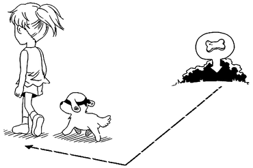 Однако хотя собаки и могут ориентироваться таким образом, обычно они этого не делают. Допустим, угощение спрятано слева от собаки. Повернем собаку так, чтобы она подходила к лакомству с противоположной стороны. В таком случае еда будет находиться уже справа. К сожалению, собаки все равно принимаются искать слева. Такой метод поиска называется эгоцентрическим.