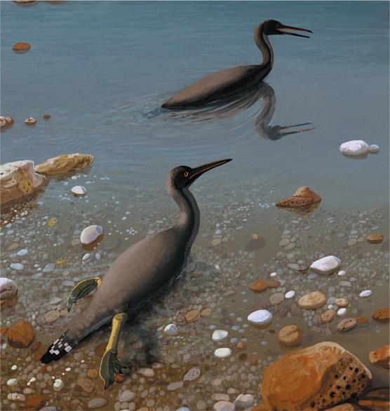 Множество раз птицы теряли способность летать. Гесперорнис – крупная зубастая нелетающая морская птица мелового периода. Его крылья представляли собой крошечные отростки, которых, наверное, у этих животных вообще не было видно. На пальцах ног были крупные лопасти, способствующие плаванию